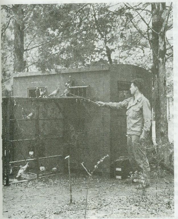 我在馴服鴿子方面曾有相當(dāng)成就,而且我曾經(jīng)每48小時就做馴服鴿子適應(yīng)新鴿舍的工作,那時我是訓(xùn)練陸軍軍鴿以供機動鴿舍使用。不過,那是有點不同的,因為在那時期我們并不很在乎任何損失。