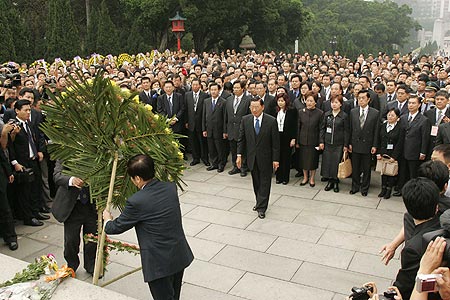 二、 2005年03月29日,江丙坤率團(tuán)拜謁黃花崗七十二烈士陵園