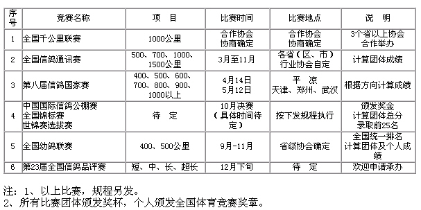 2007年全國信鴿競賽計劃