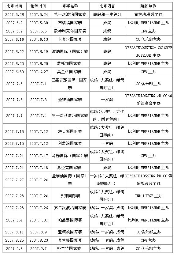 2007年全國(guó)信鴿競(jìng)賽計(jì)劃