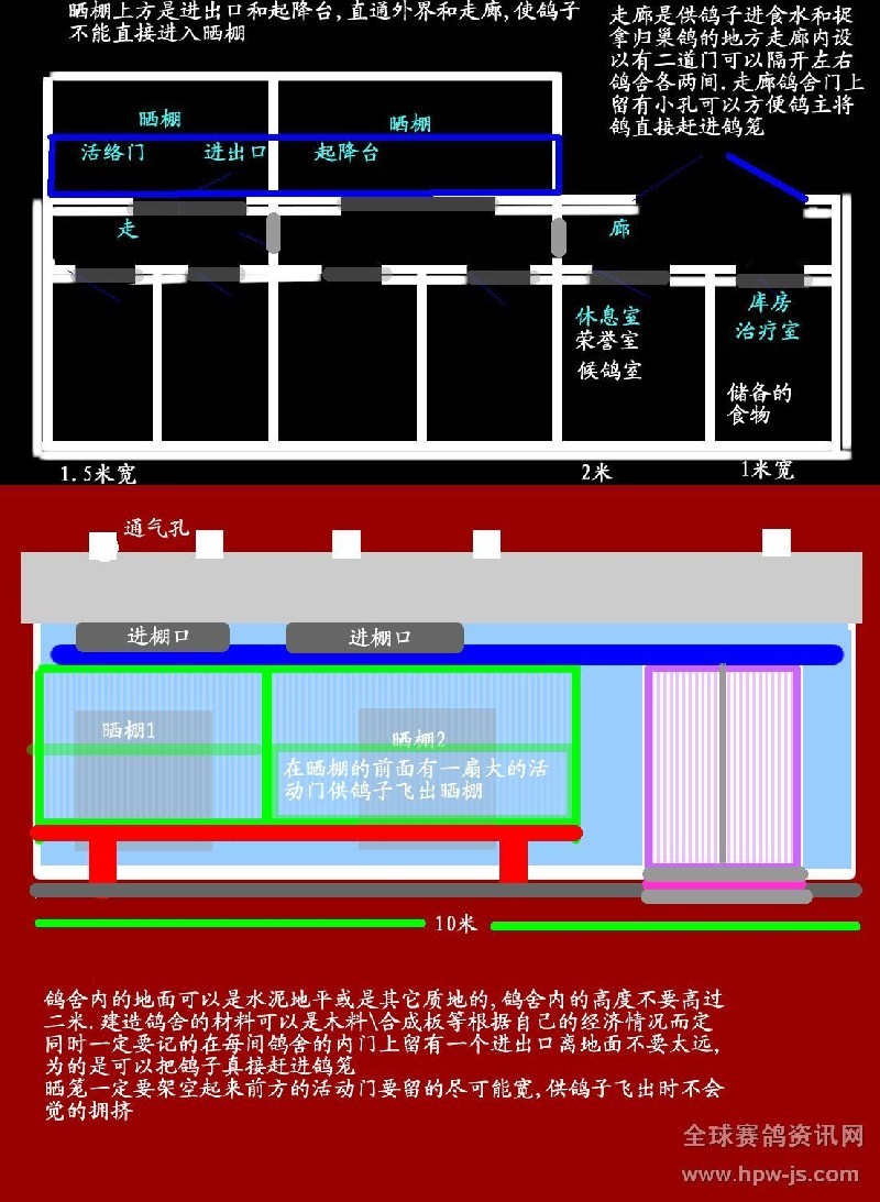 因?yàn)榭吹胶芏鄤傞_始養(yǎng)鴿的朋友,四處打聽鴿舍的設(shè)計(jì)圖,所以就想到上傳一個(gè)自己設(shè)計(jì)的鴿舍來,當(dāng)然一定還存在許多不足的地方,請(qǐng)大家多多指出以便進(jìn)一步改進(jìn),使鴿舍主人使用起來更方便,鴿子們住進(jìn)去也更舒適.