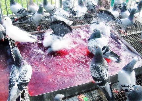 有一種是因環(huán)境的溫度過高而造成的熱緊迫,鴿子是一種怕熱、不怕冷的動物。當溫度高於攝氏38度以上時,就可以對鴿字造成極大的緊迫。在中國境內(nèi),有很多地區(qū),在集鴿入籠的情況里,都是鴿滿為患,運鴿車的每一小格均是塞的滿滿的。鴿子本身的體溫就有42度,擠在一個有限的空間里,溫度會較車外提升的更高,再加上通風不良,造成脫水、內(nèi)臟充血、血液電解質(zhì)及心臟血管的異常,這種鄰介重度破壞性的緊迫,就已經(jīng)可以讓多部份的鴿子淘汰了。