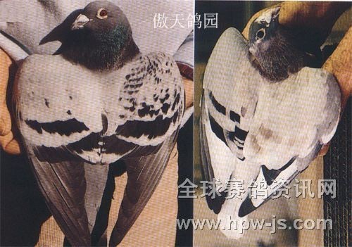 父親為都當賽冠軍、04年ZAV鴿王賽三名。母親為“晚生湯拇”家族。另一羽游棚,本舍以超過萬元的拍賣價購得。當手握鴿子的第一感覺是“雄壯”,而打開主羽一看,覺得翅膀的比例短了些,也可發(fā)現(xiàn)因病而變形的主翼羽毛。