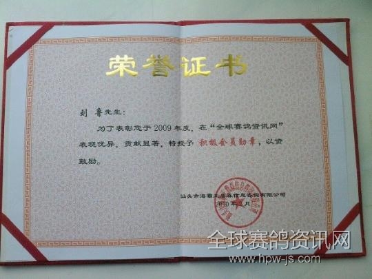 今天一早去鴿友家,拿到了快件,一看是海網(wǎng)發(fā)給的。是一本紅彤彤的證書(shū),上面書(shū)有四個(gè)大字“榮譽(yù)證書(shū)”。翻開(kāi)證書(shū)里面,寫(xiě)著對(duì)我的評(píng)價(jià),并加蓋著海霸王公司的紅色印章�?吹竭@里,心里面暖暖的,自己的付出得到了回報(bào)和認(rèn)可。各位不要嫉妒我呦,其實(shí)你們每個(gè)人都可以有機(jī)會(huì)獲得海霸網(wǎng)獎(jiǎng)勵(lì)的,只要你靜下心來(lái),寫(xiě)出自己的養(yǎng)鴿感受,拿出來(lái)和各位鴿友分享,那你離成功就不遠(yuǎn)了,真的。一份耕耘一分收獲,加油“海米”們,成功在向你招手呢。