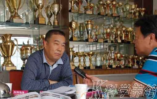 采訪中剛剛獲得北京凱世嘉華賽鴿公棚500公里決賽亞軍獲得者(左)前來向喬總致謝