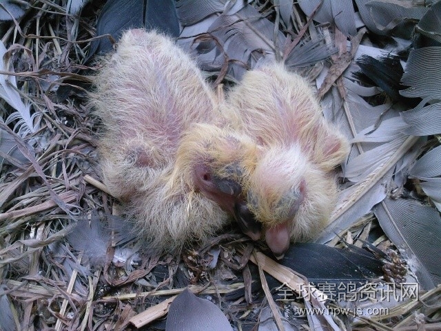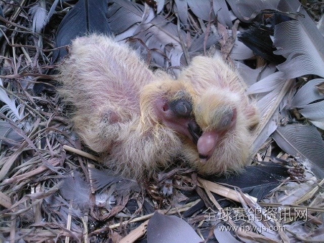 由于是夏季,溫度高,鴿友也是喂鴿子時(shí)才去鴿棚的,沒有發(fā)現(xiàn)啥特別情況。只是在8月初看到這兩羽鴿子在槽盆里親熱,也沒多想,估計(jì)是同性戀吧。沒過多久還下了兩個(gè)蛋,想著雌鴿下的肯定是孵不出來,也就沒管,過幾天把蛋抽走,由于鴿友忙,過后也就忘了取出。鴿友禮拜天打掃衛(wèi)生時(shí),卻發(fā)現(xiàn)孵出了兩羽毛茸茸的小鴿子。