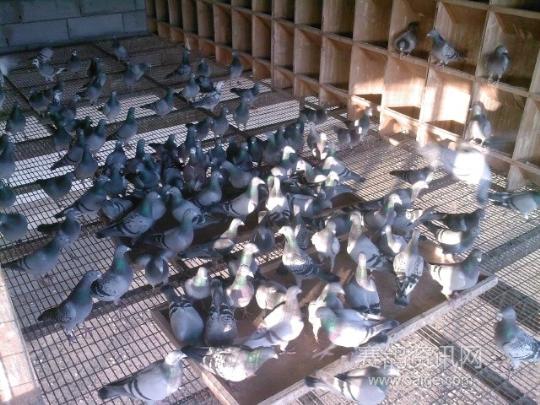 左側(cè)棚內(nèi)的鴿子在休息