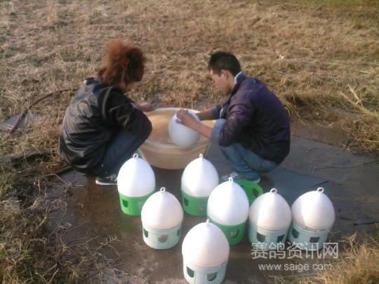 共同查看賽鴿吃食情況