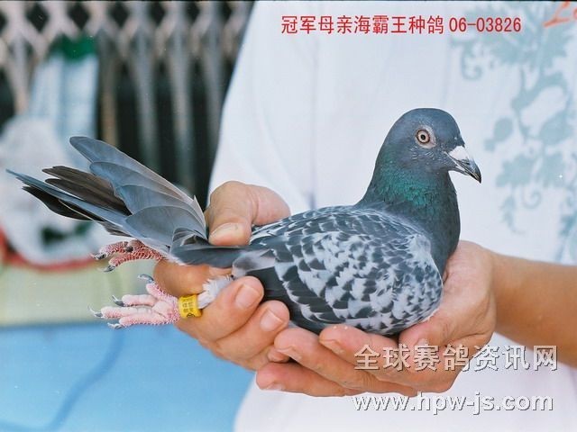 其一是因為天熱,沿途最高氣溫有達41度的,至少最高氣溫也達到37度;其二最大的障礙還在于:司放當天從浙江寧海到福州近400KM多空距內(nèi)都有陣雨和雷雨。所以在這場比賽中,當天僅歸13羽。其中環(huán)號:08-068538 羽色:淺雨點 眼砂:砂眼 雌鴿,獲總體第5名、300元組冠軍,贏得獎金5萬多元。這羽獲獎鴿系由一羽掛有“海霸王詹森種鴿環(huán)”雌鴿配鴿主飛廣東江門(2004年臺江鴿會600KM三千元組冠軍、江門800KM第四名)所出的直女。從這一賽中,我們又一次看到海霸王詹森種鴿融合性的優(yōu)勢。據(jù)鴿主介紹,這只母鴿是去年引進后就配對,一配就配出個300元組冠軍、總體第五名,而且是當天破雨歸來13羽中的一羽。再者,從這羽獲獎鴿身上還看出三點:一是被全世界鴿公認為“鴿圣”的詹森家的鴿子,經(jīng)過海霸王詹森育種中心的多年參賽淘汰和培育后,不僅能在一馬平川上飛得快,而且在多山丘陵地帶一樣如箭似風般神速;其二最為難能可貴的是能耐高溫飛行,并能沖破重重雷陣雨快速歸巢;其三是海霸王詹森鴿不但二三百短程快,在600KM~1000KM中距離賽事中也一樣快。