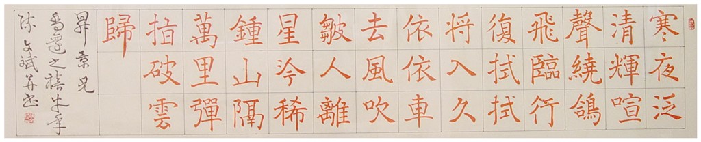 尾聯(lián)「鐘山隔萬里,彈指破雲(yún)歸�!�鐘山,指出司放地是在南京的鐘山腳下,與歸巢地福州相隔千山萬水,可見賽距之遠(yuǎn),又是在寒冷冬日。此時(shí)處於南北交界處的南京雖說談不上「千里冰封」,但也應(yīng)當(dāng)是大雪紛飛。加上沿途三分之二路程是屬於山區(qū)丘陵地帶,山巒起伏,連綿不絕,可見其賽事之艱難。冬賽,對(duì)於本地來說,當(dāng)天歸相當(dāng)難,有時(shí)當(dāng)天不見鴿,若能見鴿也只是寥寥數(shù)羽。但是本地鴿友樂於挑戰(zhàn),越是艱難越向前,氣概堪嘉。 「彈指破雲(yún)歸!」,當(dāng)然是一種誇張的說法。升景兄堪稱榕城賽鴿大贏家。關(guān)於他的詳細(xì)資料,可進(jìn)入海網(wǎng)首頁的《人物專訪》欄目,點(diǎn)擊「更多」在「搜索」框中查找《對(duì)話陳升景……》一文。雖說升景兄家中獎(jiǎng)狀、獎(jiǎng)盃不計(jì)其數(shù)。但他還是不滿足現(xiàn)有的成績,他常說,賽績總是代表過去的。作為一名真正意義的賽鴿家,要永遠(yuǎn)拚搏在賽場(chǎng)上,養(yǎng)技要精益求精,訓(xùn)法要不斷依照鴿子的狀態(tài)和天氣的變化而變化,鴿子也要好中求好,速度更要快中再加快。