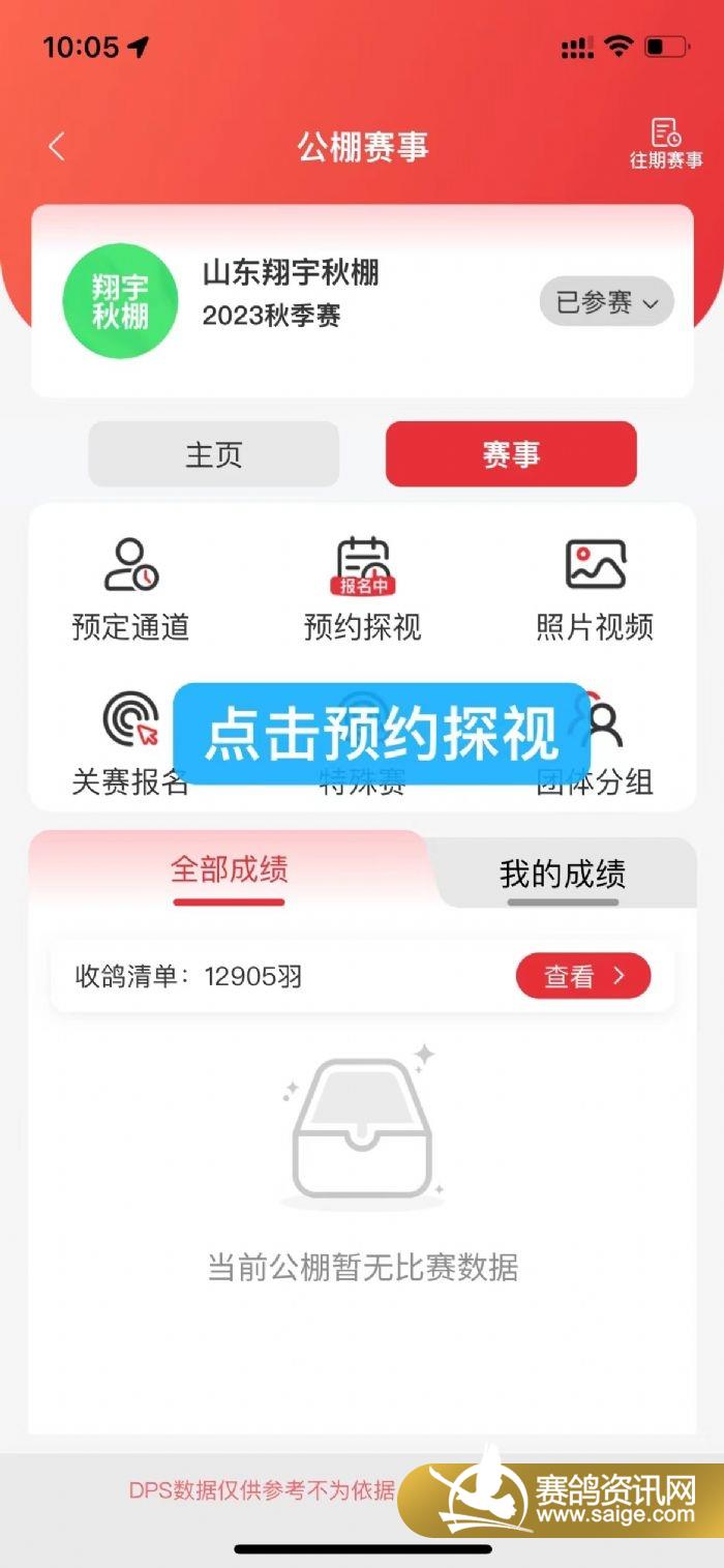 本公棚探視形式為現(xiàn)場(chǎng)探視,視頻探視和不探視,請(qǐng)參賽會(huì)員進(jìn)入DPS通道內(nèi)進(jìn)行探視報(bào)名,未報(bào)名則默認(rèn)為現(xiàn)場(chǎng)探視。