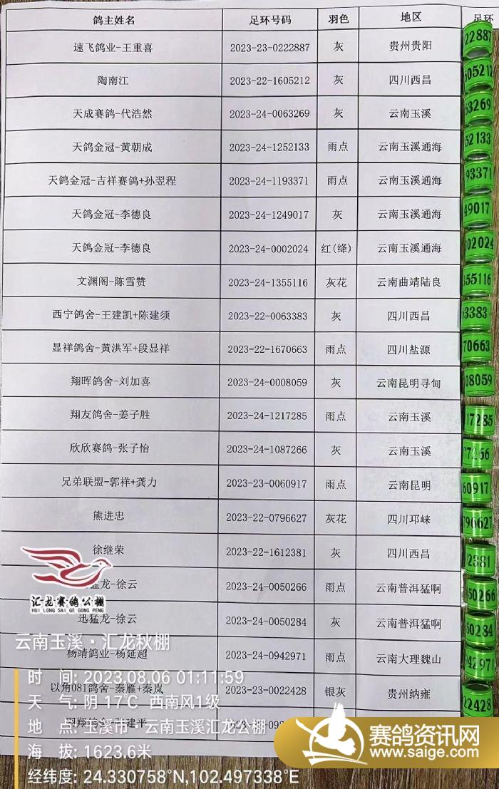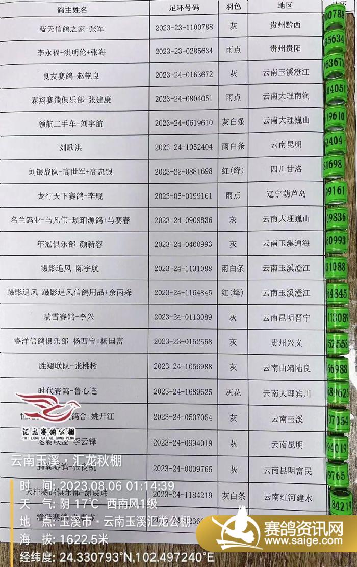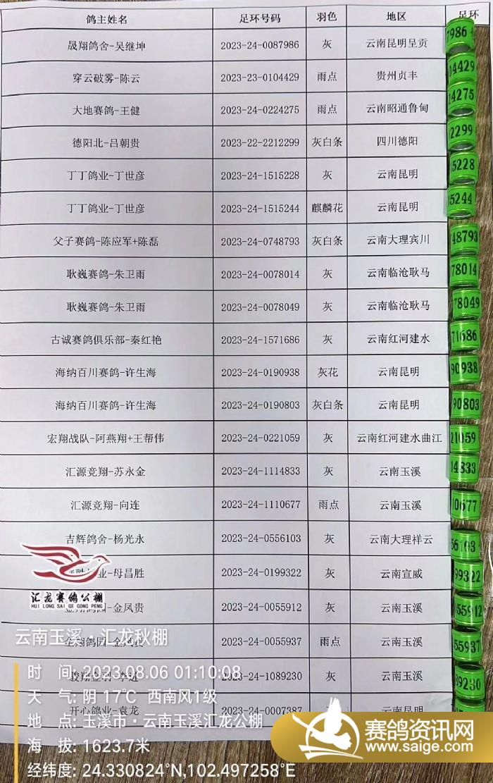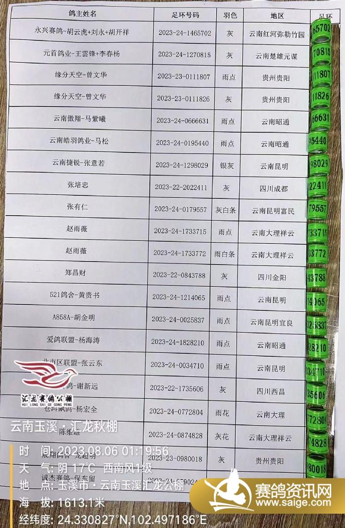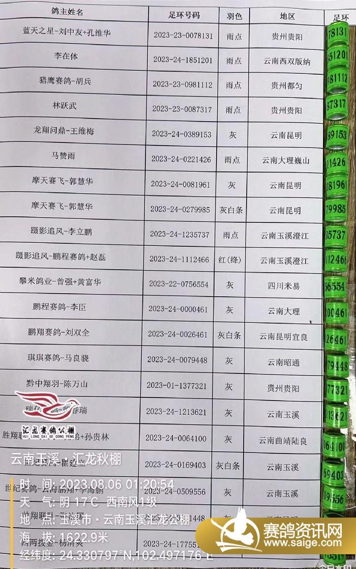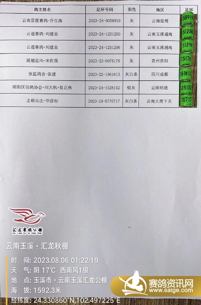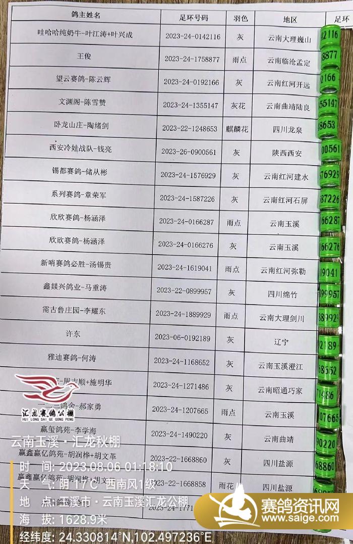 昨日掃描出的病亡鴿足環(huán)公布如下: