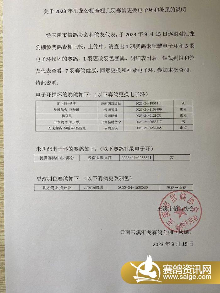 匯龍秋棚:查棚幾羽賽鴿更換電子環(huán)和補(bǔ)錄的說明