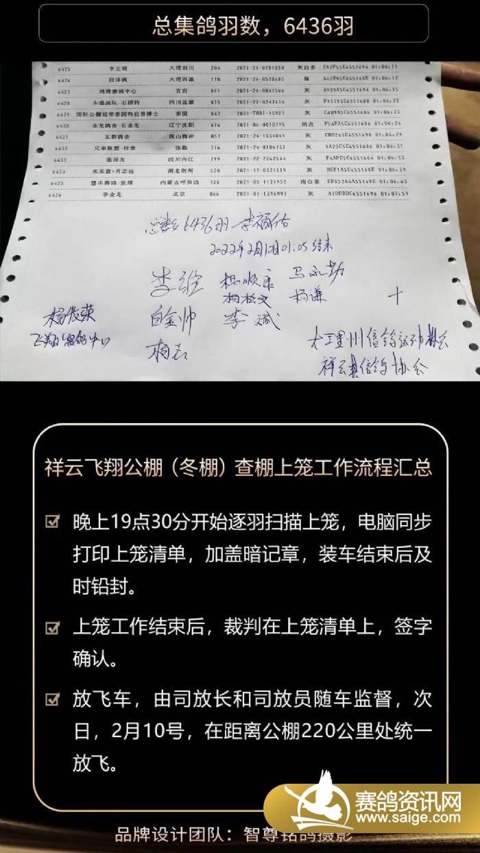 飛翔冬棚220公里預(yù)賽上籠清單(按順序)